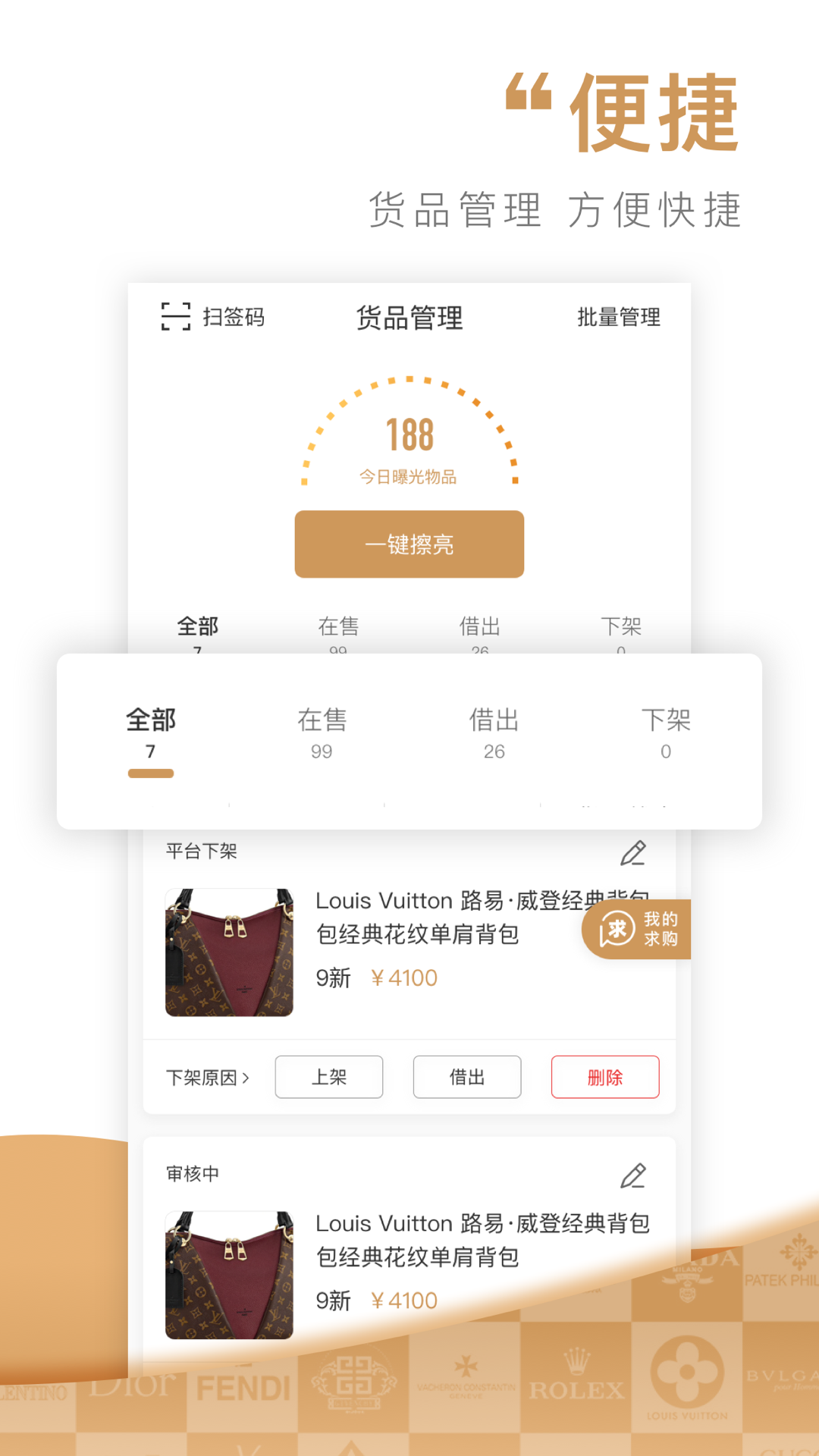 应用详情:奢联云销是一款实现奢侈品店主之间安全快速交易,帮助店主管理店铺快速盈利的应用。