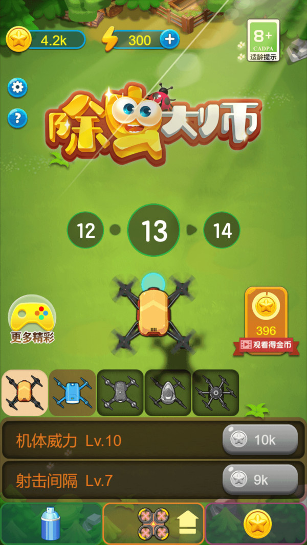 我们组建了一只消灭害虫的飞弹特攻队,快来加入战斗吧! 除虫大师是一款有趣的休闲躲避射击游戏,多种多样的战机供您选择,您可以升级这些武器和日常收益,来击败各种各样的农田害虫!