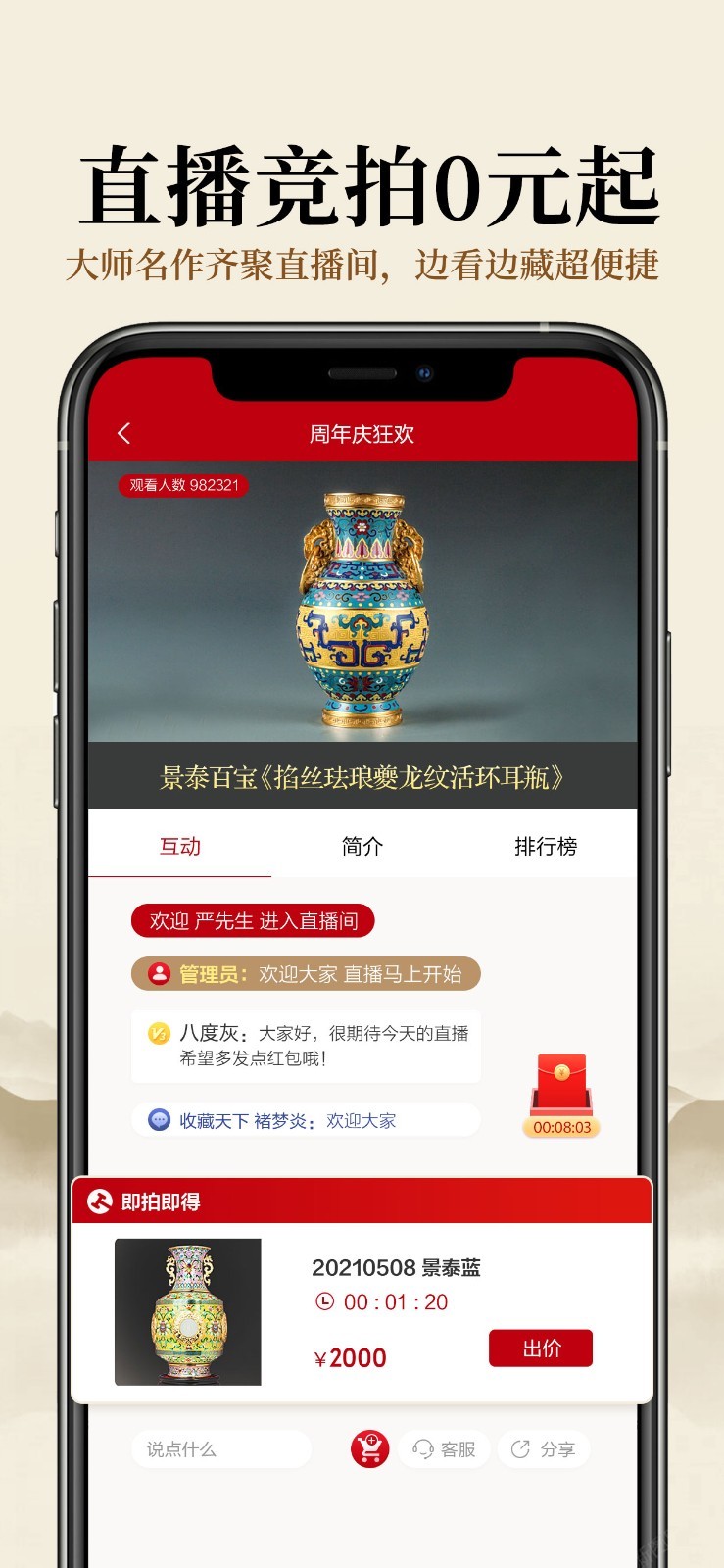 艺术大师、故宫鉴宝专家做客收藏天下直播间,与藏友现场互动,您不仅可以跟艺术大师在线交流藏品的信息,更可以获取到更多的业内讯息,参与直播活动还可领取丰厚奖品。