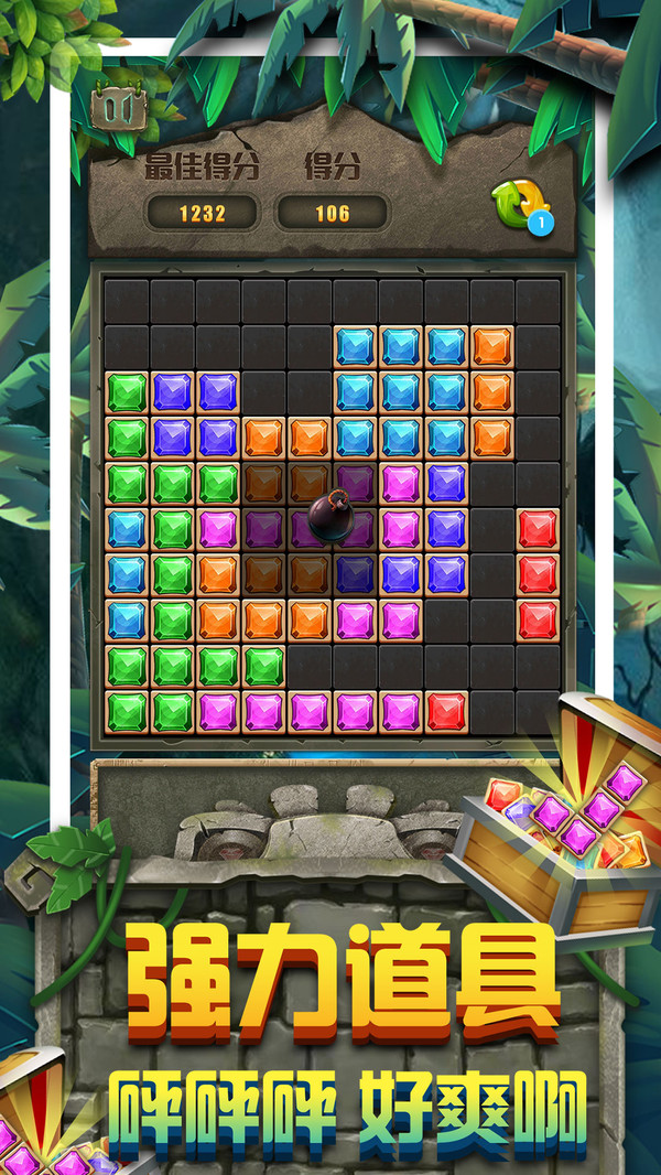 来玩这款会让人意犹未尽的脑力拼图游戏吧!一旦你开始玩,就会被吸引住。拖动合适形状的宝石放在空白处,消除一行和一列宝石块,获得分数。我们的目标是,以水平和竖直创建并销毁在屏幕上全系宝石块~消除越多,得分越高哦!