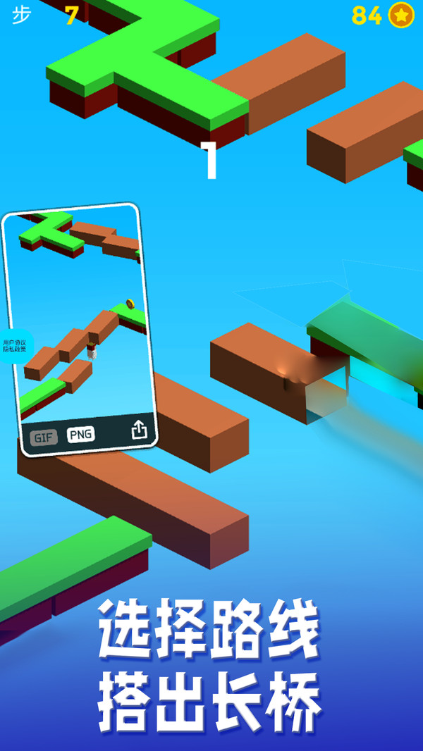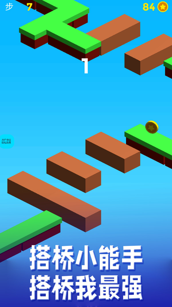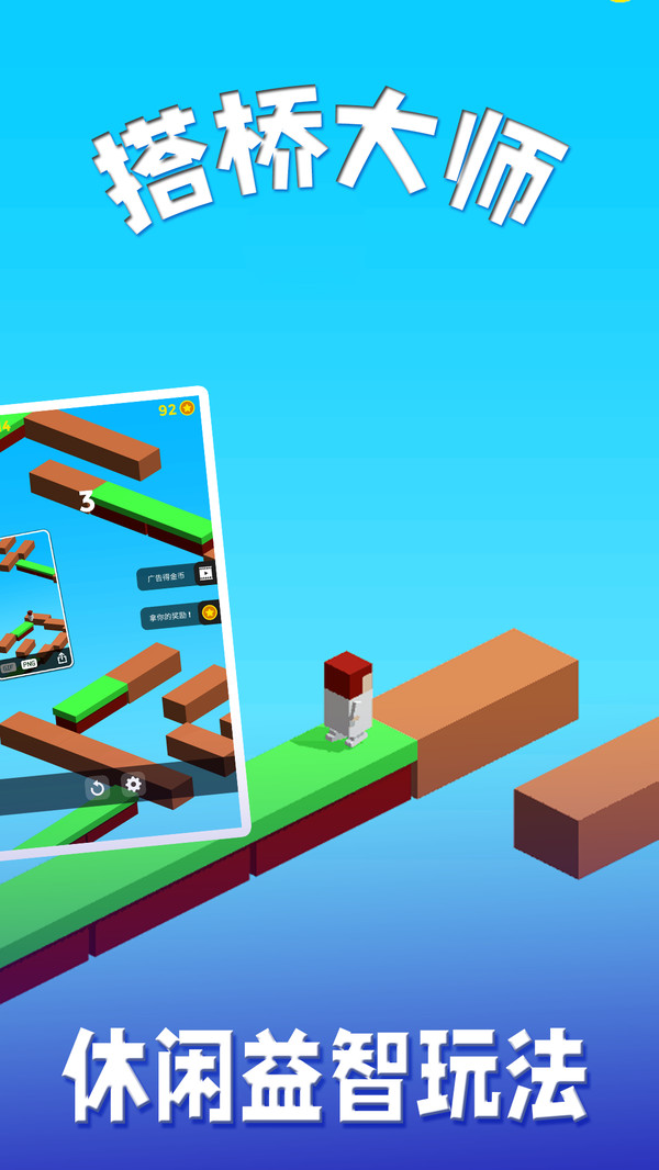 搭桥大师是一款搭桥跑酷的游戏,通过移动木头快速搭建桥梁通过关卡!搭桥大师这个游戏非常考验你的反应能力哦! 应用特色: 1,多种跑酷主角,等你来选。 2,迅速点击木头搭建桥梁通关。 3,通过关卡获得金币,可以增加闯关次数。 4,需要强力的反应能力。 新奇有趣的休闲跑酷游戏,赶紧来尝试吧!通过这个游戏可以提高宝宝们的反应能力和专注力哦!