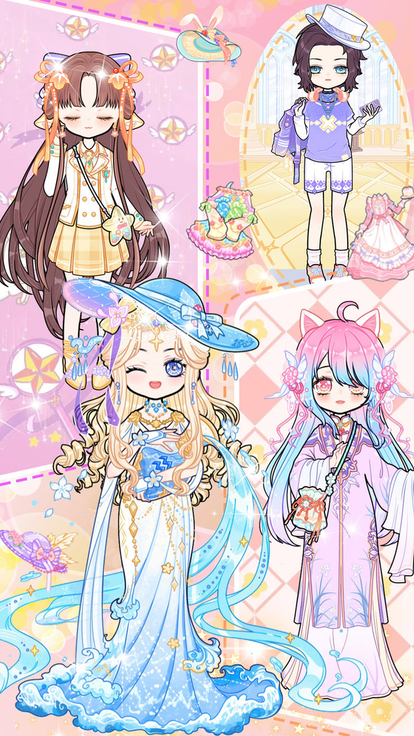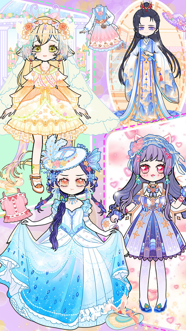 在这里,你可以选择卡哇伊洛丽塔裙、青春百褶裙、优雅长裙等海量服饰,还可以有意外收获:梦幻翅膀、特色贴纸等等小装饰也萌化你的心!