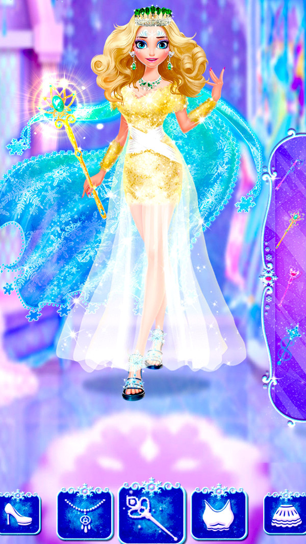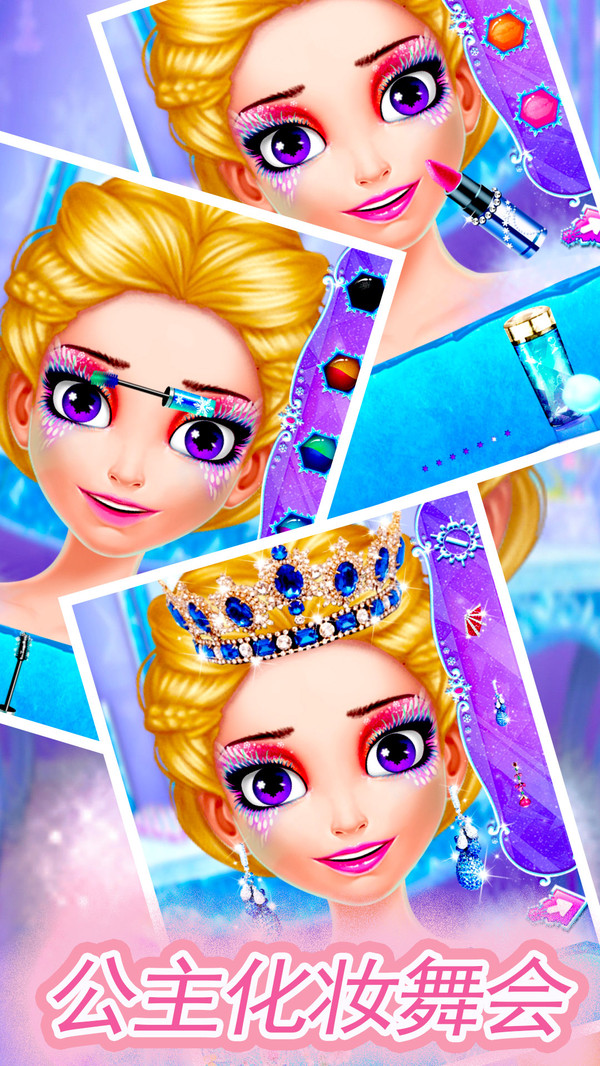 公主将在宫殿里举行一个舞会。她想打扮成白雪公主,并用雪主题装饰宫殿。你能帮她挑选一些漂亮的衣服吗?带她去洗脸,化上精致的妆容,把她打扮成白雪公主。当然,装饰品和玻璃鞋是必要的。然后我们的公主可以和她英俊的王子跳舞。 特点: •皮肤色调和腮红 •眼透镜和眉毛 •神话般的睫毛膏 •美艳眼影吨 •闪闪发光和哑光唇膏的颜色 •冷漠的脸, •冰爽上衣 •项链和耳环 •美丽的发型 •精彩皇冠