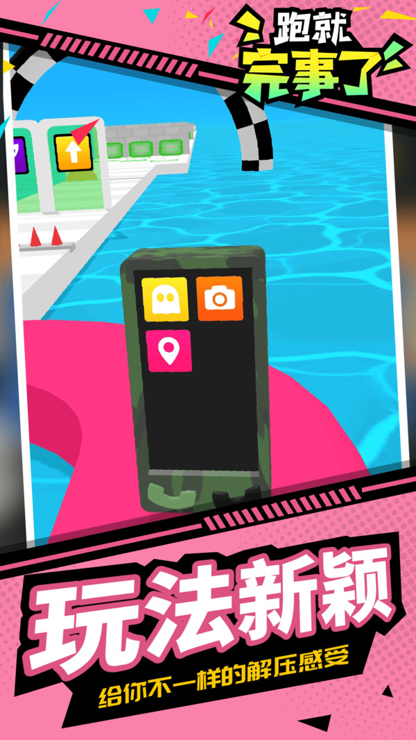 《跑就完事了》是一款趣味跑酷类休闲小游戏。游戏将会带我们进入时光跑道开启手机发展之旅,在跑道上,会出现功能门让我们DIY自己的手机,手机发展得越先进,游戏得分就更高;跑道上还会遇到各种陷阱和阻碍你发展的对手,你要克服难关并到达终点。快来一起进入时光跑道吧!