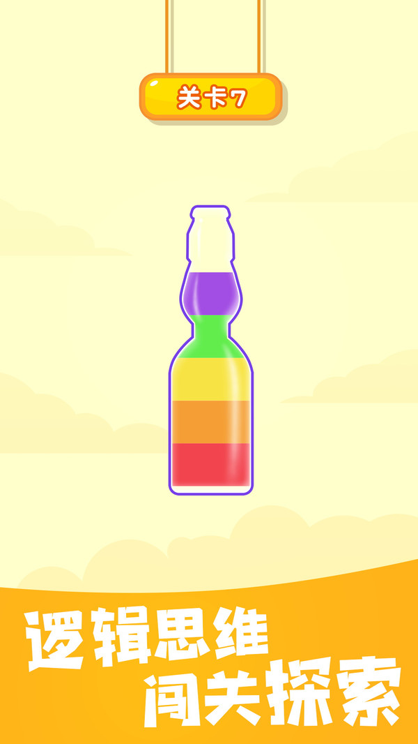 3.所有瓶子中的液体都是一种颜色的时候则通关。