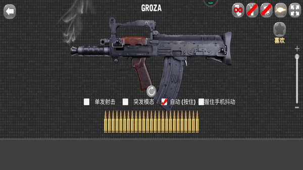 无限弹药体验畅快淋漓的打击感,十余种不z同类型的枪械,手枪、步枪、狙击枪、机枪、火药枪等等,三维仿真模型,上弹夹、开保险、按动扳机,细致的反冲击力、枪火和烟的效果让你赏心悦目!
