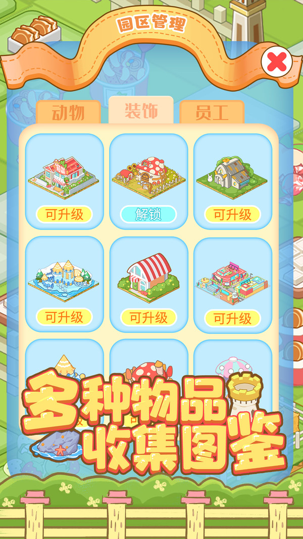 房屋,建筑,游戏设施……多种物品都在等着你来解锁,丰厚奖励领不完,简单合并,成就自己的动物城!