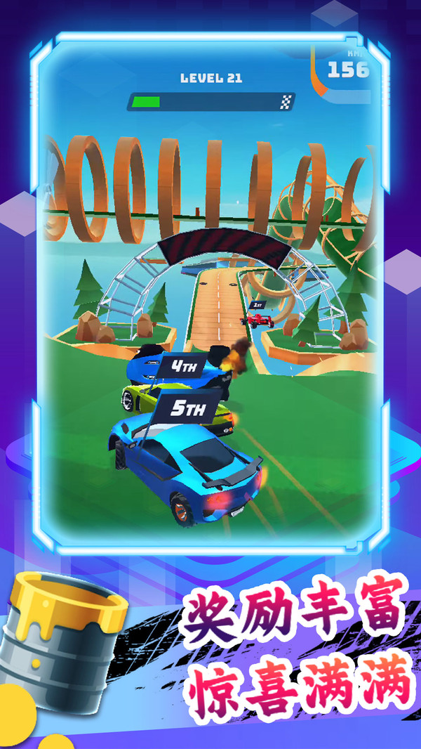 这是一款既易于上手,又能给你带来真真正正的驾驶挑战,同时还满载着扑面而来的刺激感、无穷无尽的变化、炫酷无比的赛车和危险的对手,而这一切的速度与激情都可以在短短几分钟的比赛中实现?
