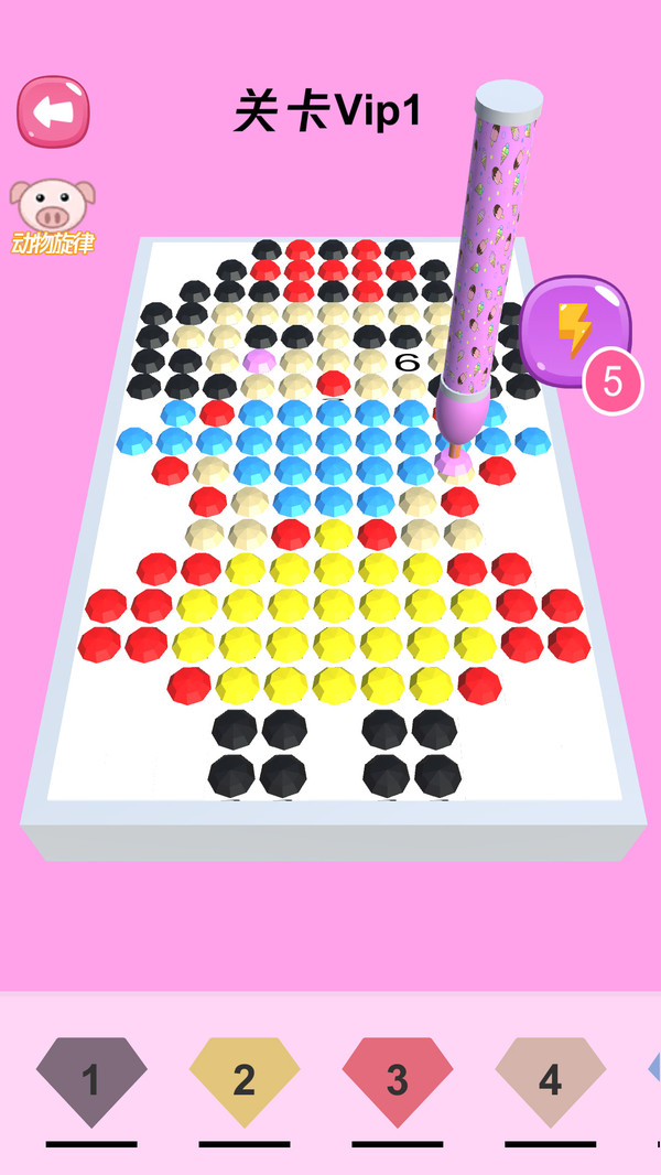 3D模拟真实的钻石画镶钻过程,多张钻石贴画多风格图案供小朋友粘贴,每张钻石画使用数字符号,小朋友只需根据其数字为关联的单元格把镶钻笔移动到上方,就会自动进行镶钻,镶钻清脆的声音也特别解压,闪闪亮亮的钻石画赶紧分享给你的朋友吧