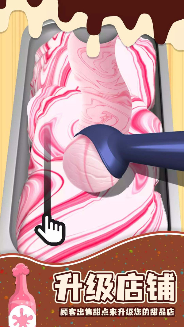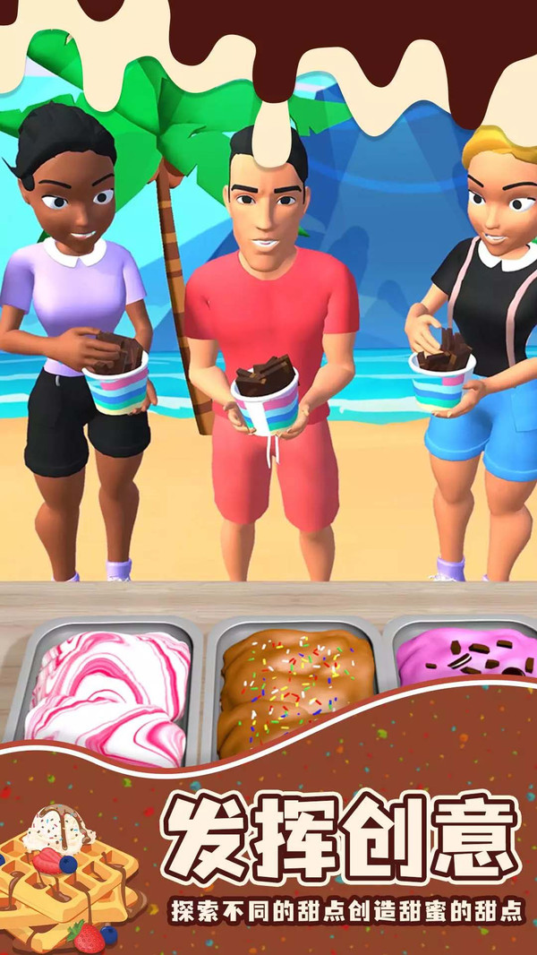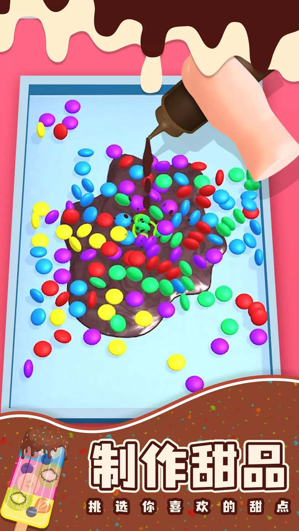 2. 趣味模拟制作!玩家在制作甜品过程中模拟各种真实的操作,将手中的冰淇淋打碎、铺平、冰冻等,让玩家仿佛在真实地制作一份甜品,使制作过程充满了趣味。