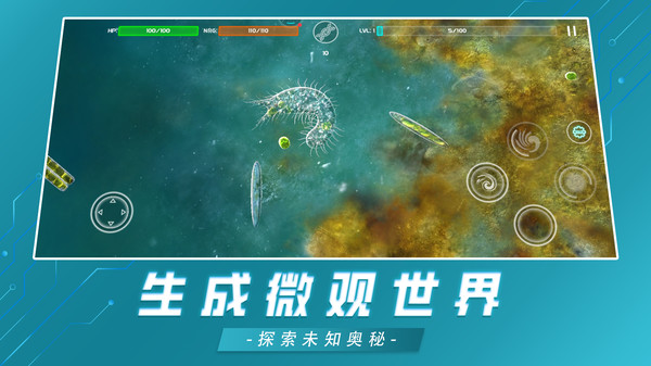 美味星球带你进入微观的生物世界,从一个单细胞开始,收集dna、吞噬其他的微生物以及融合各种微观元素进行成长,体验最神奇的微观世界。 培养您的生物,寻找食物,收集DNA,积累经验并改善其特性。 该游戏具有逼真的单细胞物种,例如硅藻,纤毛,细菌,藻类等,以及无限的和程序生成的微观世界。 游戏丰富的挑战可以给你带来更有趣的经验和更快乐的吞噬进化的旅程。只有不断的去吞噬,才能让你愈加强壮,把握新的才能,提高人物的力气。独特的升级进化系统,可以看到生物的每一个部分,看到生物进化的有趣释放。