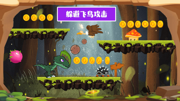 《恐龙宝宝大冒险》是一款休闲益智类闯关游戏,是一款类似超级玛丽的小游戏。玩家控制恐龙宝宝在充满危险的丛林中闯关,打败怪物,躲避空中危险,顺利达到终点。这款游戏操作简单,易上手,有的动感好听的音乐,能够瞬间带你回忆童年。喜欢大冒险的玩家,赶紧加入我们吧,精彩内容不容错过! 特点: 1、有的可爱萌趣的恐龙宝宝! 2、超多关卡,关关精彩! 3、有的动感好听的背景音乐! 4、超多地图等你解锁! 5、操作简单,易上手!