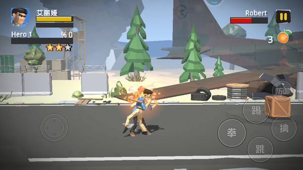 这是一款高自由度的格斗游戏,游戏采用复古怀旧风格,解锁你的超级英雄,丰富的格斗技巧让你玩、踢、抓、投、闪,消灭每一个对手,成为街头斗士。