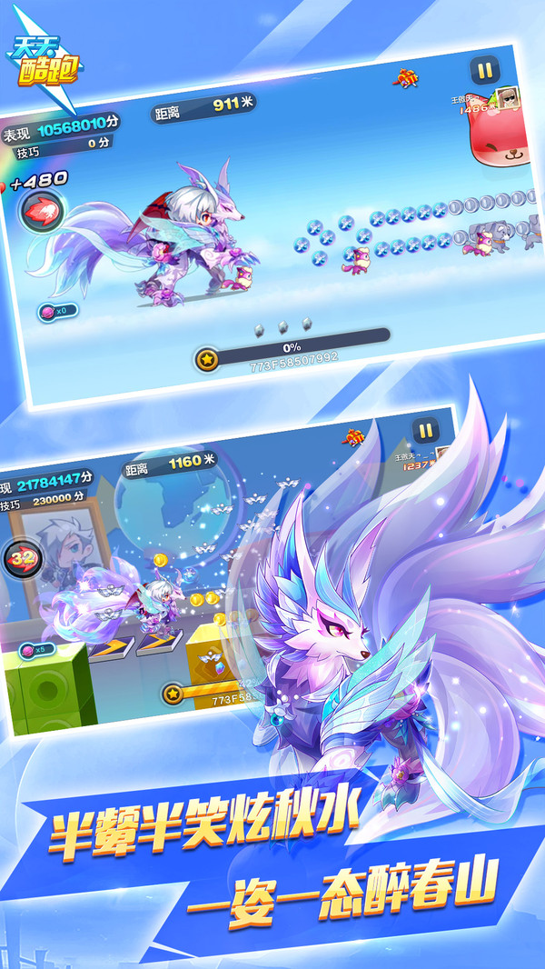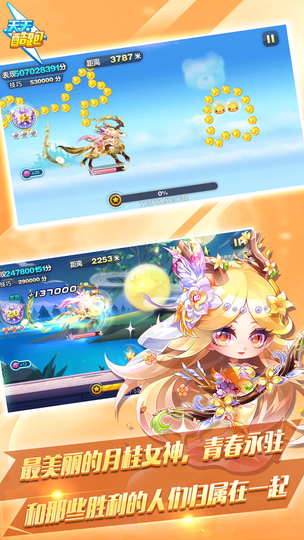 《天天酷跑》是腾讯游戏研发的一款休闲类手机跑酷游戏,在沿袭传统玩法的基础上,特别加入了闪靓坐骑、萌动宠物等一系列心动设计,为玩家带来最为得心应手的跑酷体验!