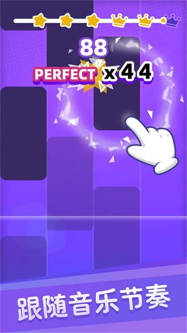 跟着节奏点击黑键,一个都不能少!集中注意力,提高反应力!千万别踩白块儿,挑战智力与手速,随着音乐舞动手指。点击掉落的块儿即可发出美妙的音乐,瞄准黑白2键钢琴块,变换前进!