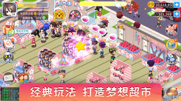 体验超市的经营乐趣,自己进货上架,提升商品价值,扩大超市等级,提升更多的客流!