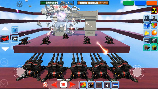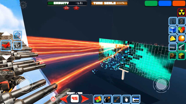 这是一款物理沙盒创造与破坏游戏,您可以在平台上创造各种建筑,不仅有方块还有各种奇怪道具,搭建出建筑后,选择武器来一场绚丽的破坏吧! 游戏中还有各种烟花,快来开始烟火表演吧!