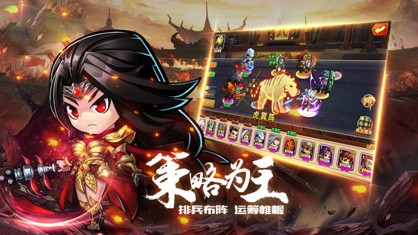 烽火国战,无双上将!模拟三国真实战场、名将领军,真实还原步兵、弓兵、骑兵多系兵种对抗!名将辅战,兵种相克,多部队培养,建立强大的军事系统助战攻城,你就是最高统帅!