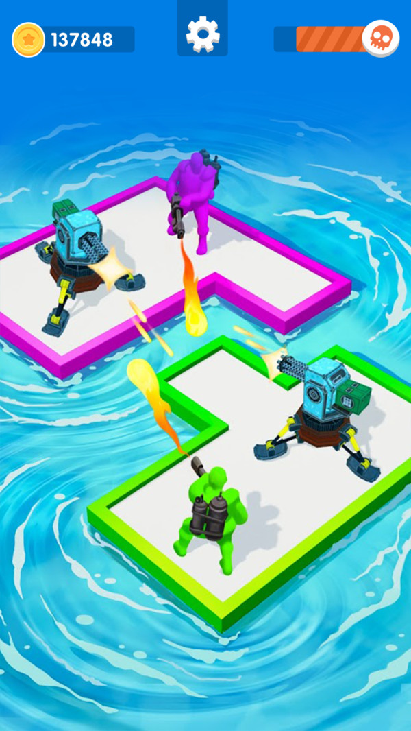 这是一场海上争夺战!谁能成为这片海域的领主,需要经过激烈的争夺才能得出分晓!你需要控制你的木筏去救助落水的士兵,让他们成为你的战士,得到更多木筏,并找到涡轮和瞭望台,提升木筏的战力,成为这片海域的王者吧!