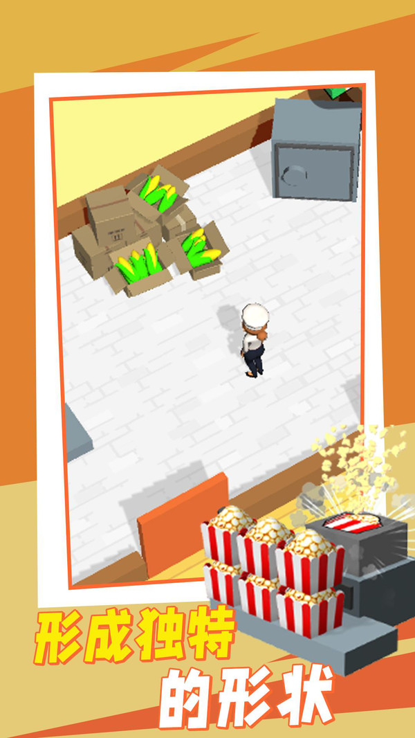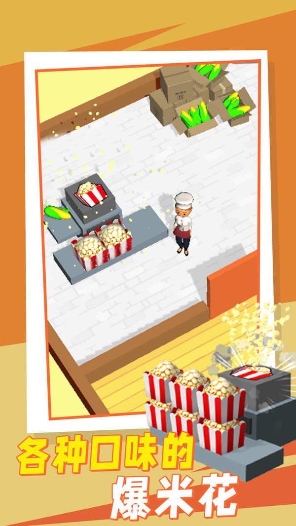 玩家可以在这款游戏当中制作出不同口味的爆米花。玩家在这里管理着一家卖爆米花的店铺,要让光顾的客人得到满意,就需要每天都做出很多不同种类的口味,同时也不要忘记研发各种形状和味道的爆米花。爆米花宇宙是一款简单有趣又好玩的经营模拟类型游戏,简洁清新的画风,整体上的场景采用黄色为主,带给人视线上放松的感觉。进入游戏后你可以根据游戏提示去完成游戏中需要完成的任务,开启全新的“旅程”,简单的游戏风格,多样的游戏关卡,经典的游戏音频,让自己的店铺生意越做越好!