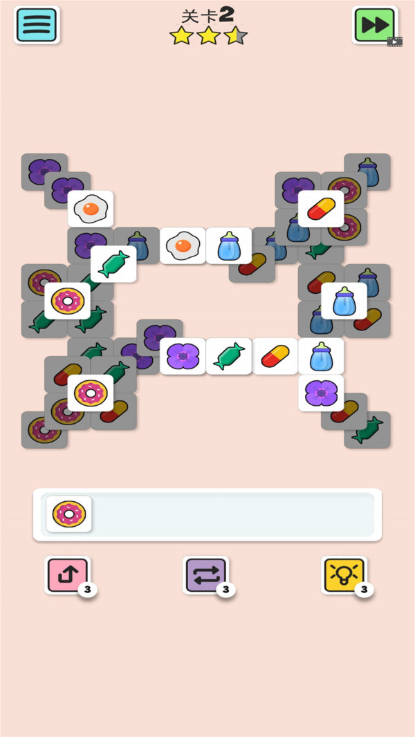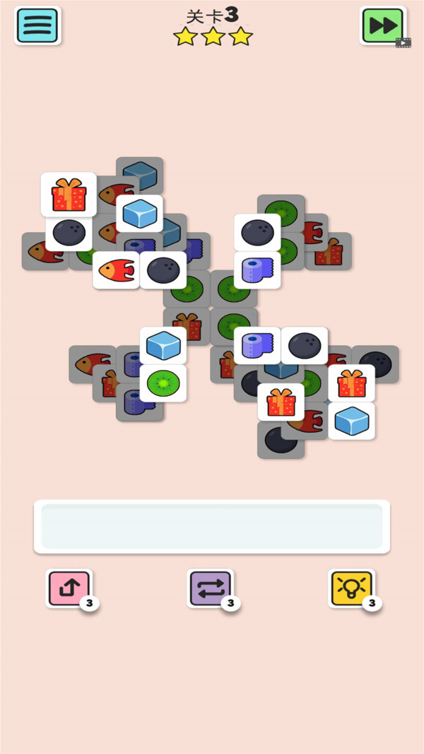 经典的三消游戏,这类游戏的玩法非常简单,对玩家的要求也是比较低的,不过想要玩得好,就要找得快找得准,这有点考验玩家的眼力如何了,将所有的方块匹配成功就可以通关当前的游戏关卡,进入到下一关。 游戏特色 只需轻点一下即可将方块堆积起来 三个相同的方块即可配对 清空游戏盘后,你就赢了 如果你没有合并你堆积的 7 个方块,则会失败