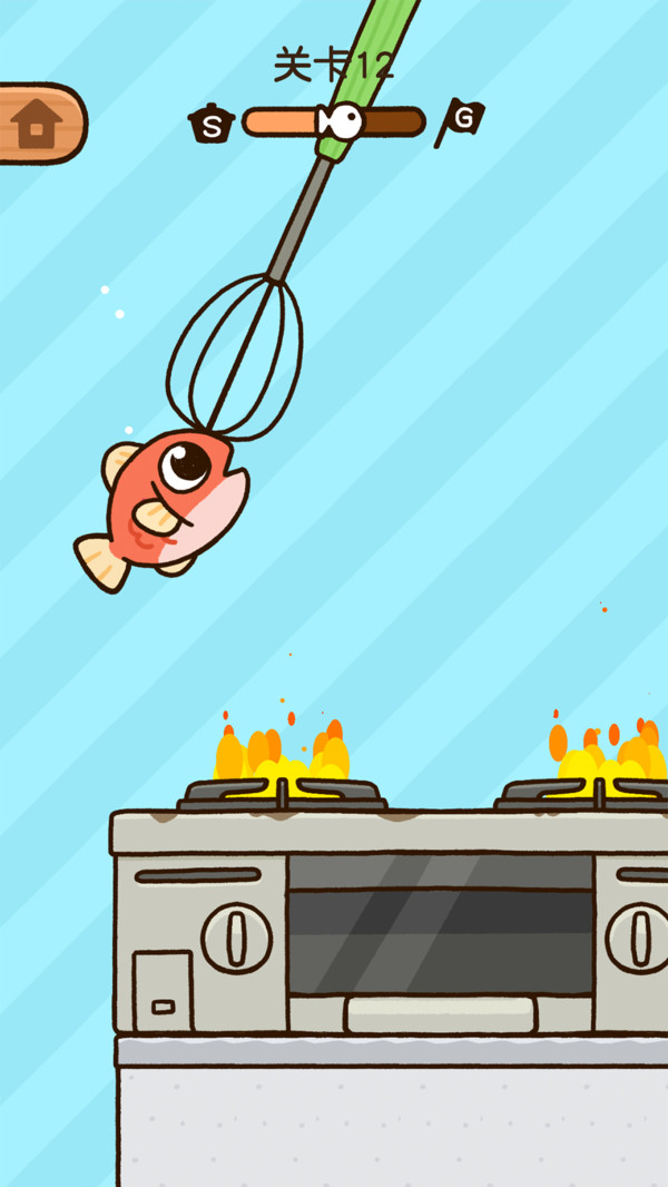 咸鱼大冒险是一款咸鱼逃脱的益智闯关类手游,玩家在游戏中需要帮助咸鱼逃脱并且回归大海。点击屏幕注意咸鱼飞行的高度,贴到各种各样的障碍物上再继续跳跃,咸鱼可能被锅铲、电饭锅打中,能不能逃脱被吃的命运,快来下载帮助咸鱼逃脱吧