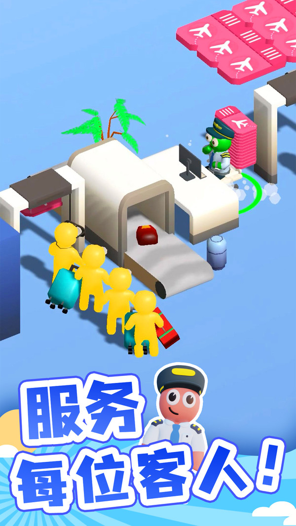在游戏中,玩家经营一家机场,通过不断解锁登记台、安检设备、座位等设备,扩大机场处理登机的人员规模。还可以通过在机场解锁汉堡店、咖啡店等店面来增加额外收入,通过雇佣不同的职员来处理机场的事务。快来扩建你的机场,让你的机场欣欣向荣吧!