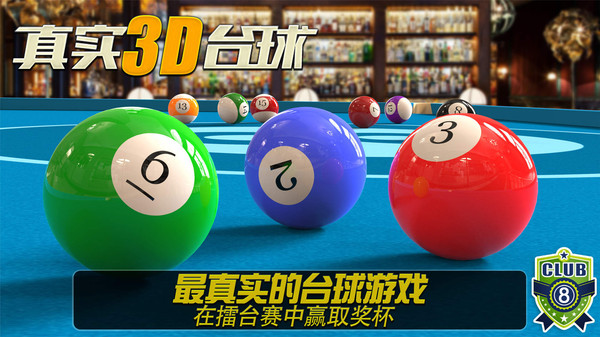 挑战网络上来自全世界的朋友在3D台球世界对战,从草根轻松成长为台球明星。