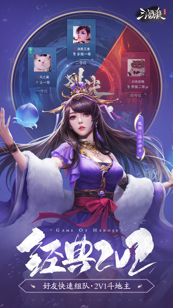 《三国杀》小游戏是由杭州游卡“三国杀”原创团队制作的小游戏版本。主打轻竞技、快节奏的对战体验,极速安装点击即玩,完全没有容量负担。 小游戏除了继承三国杀经典的身份场玩法外,还增加2v2欢乐匹配模式,1v2斗地主模式,更有段位排名比拼。游戏保留了海量经典三国杀武将,还创新改造了部分武将技能,玩法更爽,对局更短,技能更连贯! 三分钟一局,即点即玩,策略有深度,好玩又不肝!