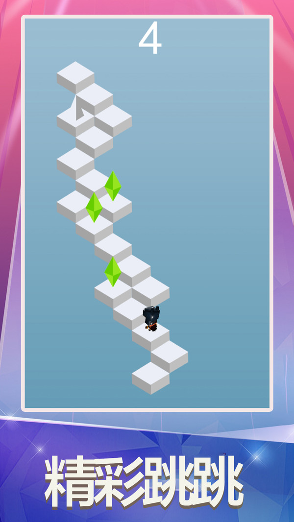 跳一跳全新版本,增加了跳跃先知模式,考验您的眼力和反应速度。 游戏在经典跳一跳的基础上,增加了跳跃先知,只需要点击屏幕左边或右边,可以快速选择跳跃的方向,如果选错,有可能会掉落万丈深渊的哦。