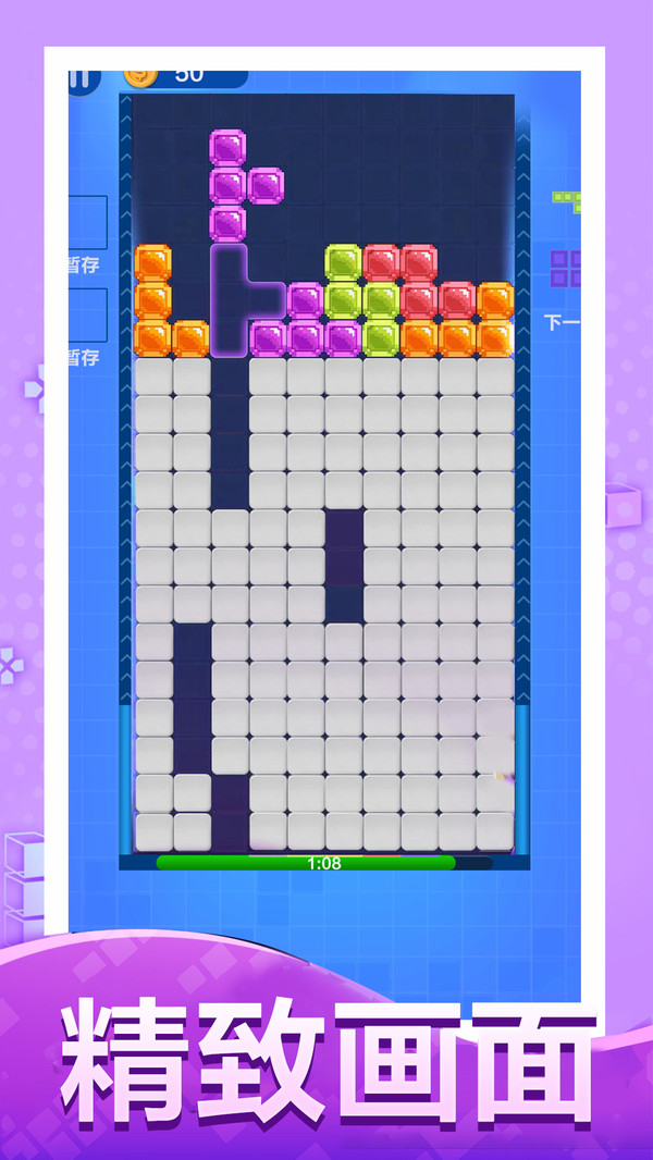 这是一款俄罗斯方块豪华特效版本,游戏有全新设计的美术特效,不需要老式的移动方块,会为玩家自动计算出合适的位置只需要点击操作就可以完成方格的控制,游戏还有填充模式的方块消除,非常值得一试哦。