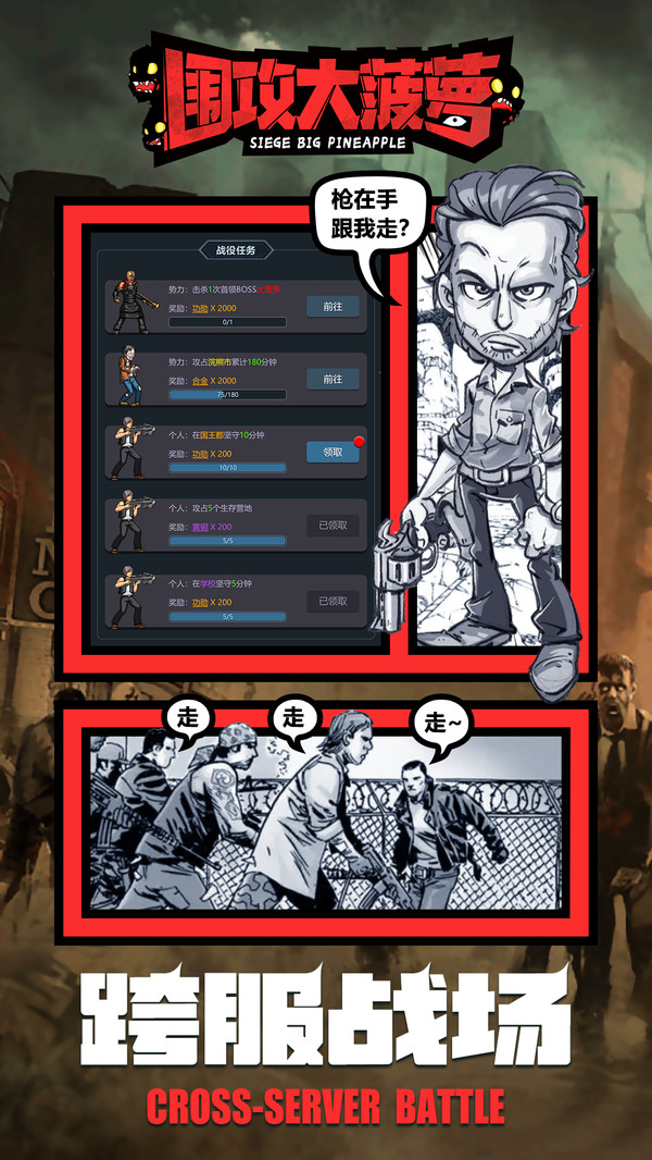 《围攻大菠萝》是一款末日题材的放置策略卡牌游戏。 一觉醒来,你发觉自己躺在医院的病床上,病房里空无一人,而病房外却是一片狼藉:诊疗室挤满了受伤的患者,地上还躺着许多重伤的人,其中一些正逐渐演变为丧尸…… 末日之下,丧尸横行,为了生存,你必须快速组建一支幸存者小队,建立庇护所,收集物资、发展科技、制作武器、加工食物,在末日下寻找一线生机,抵抗丧尸的进攻,守卫最后的家园!