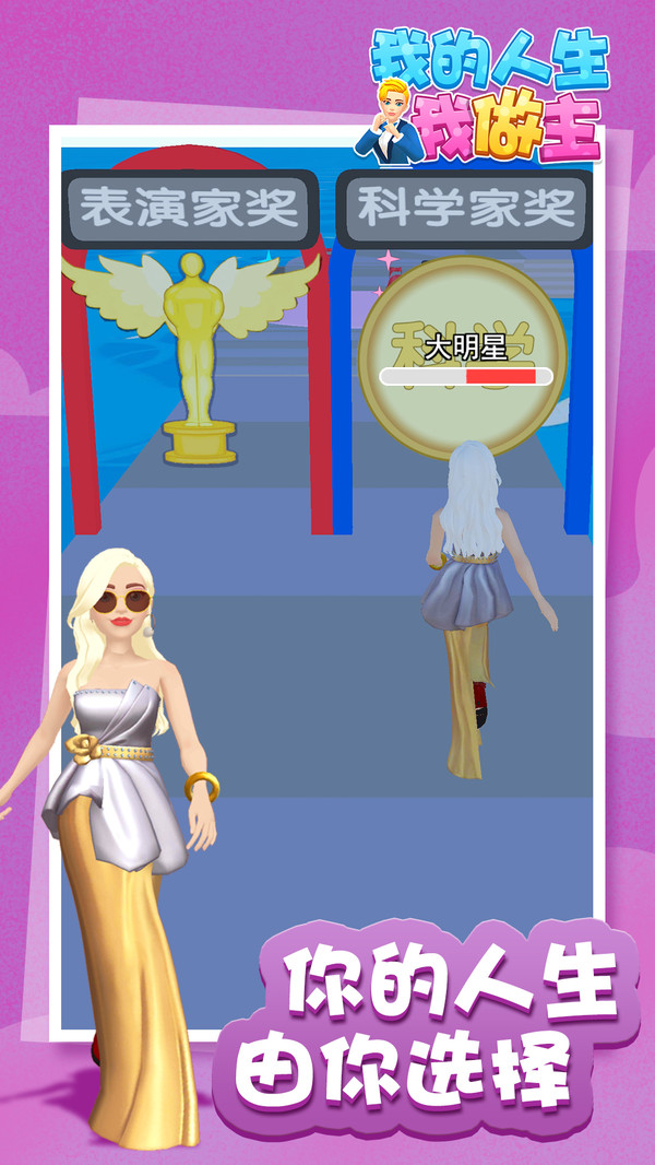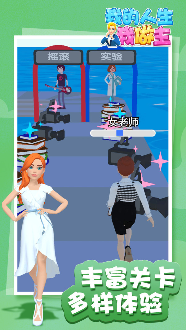 《我的人生我做主》是一款另类的休闲跑酷小游戏,游戏规则简单,在赛道上玩家收集你所需要的道具,在这个过程中你可以选择成为科学家、富翁、明星、歌手、超人等等多种成长路线,收集的道具越多离你的目标也就越近,当然在赛道之中你需要避开其他道具,否则会影响你的目标进度哦~游戏中有多种成长路线以及最终结局,等待玩家来一一揭晓~