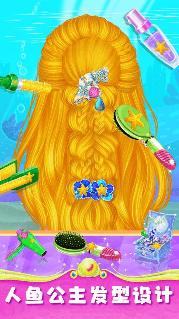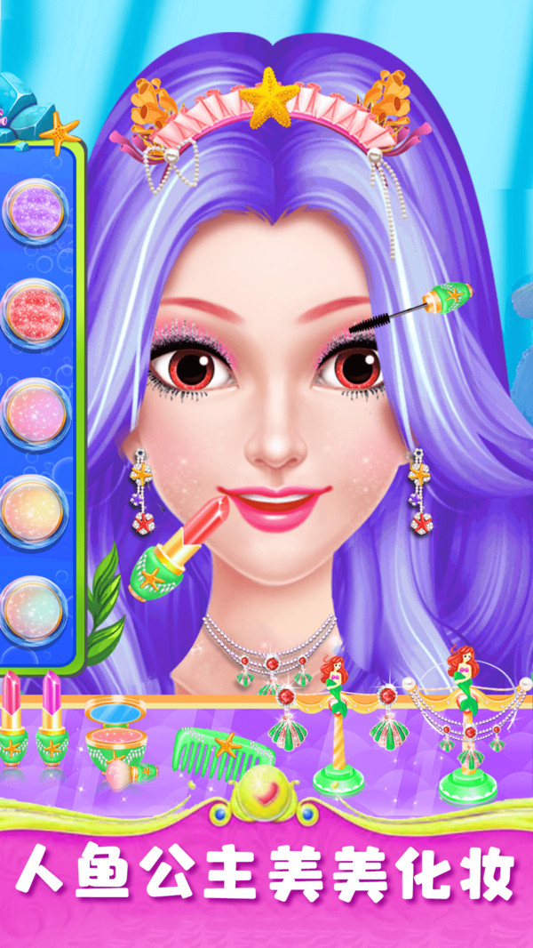 欢迎来到美人鱼公主梦幻美妆,美人鱼公主即将要参加家庭聚会,但是现在它她还没有打扮和整理房间,现在需要宝宝们来帮助她。