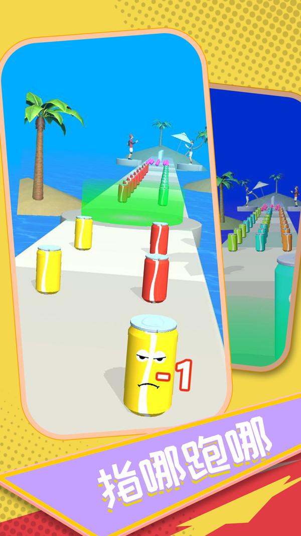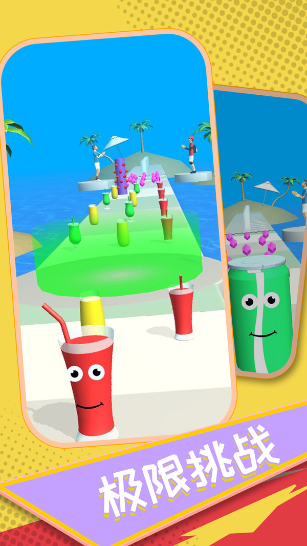 可乐果汁冲冲冲是一款画面简约趣味十足的闯关跑酷游戏,在游戏中玩家可以操控自己喜欢的饮料来进行闯关,一路上玩家可以拾取与自己相同的饮料,让自己的饮料变得越来越大,在到达终点的时候就可以获得更多的钻石,解锁更多新奇饮料~