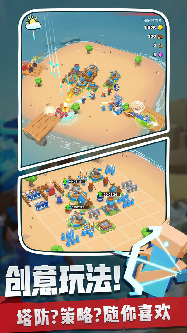 《奇兵指挥官2021》是一款魔性经营类型的战争策略游戏。在游戏中玩家将成为一座岛屿的总指挥官,将面对各式各样的危机,运用自己的智慧来抵抗敌人的进攻,合理分配资源,结合兵种与炮塔打造自己的防御阵地,甚至可以主动出击,攻打其他岛屿掠夺资源,大干一番。