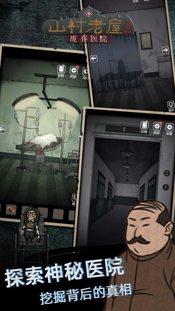 山村老屋2废弃医院是《山村老屋》第二部,游戏延伸了上一步的剧情和情节。故事来到了一个隐秘的被遗弃的医院,医院中到处都透露了诡异的气息,侦探是被谁打晕的?为何会被送到这里?这里又存在什么秘密?似乎黑手在借助男主在寻找什么?诡异的身影一直徘徊不去,深渊逐步袭来,是什么使灵魂不得安息,又是什么让背后的人念念不忘?