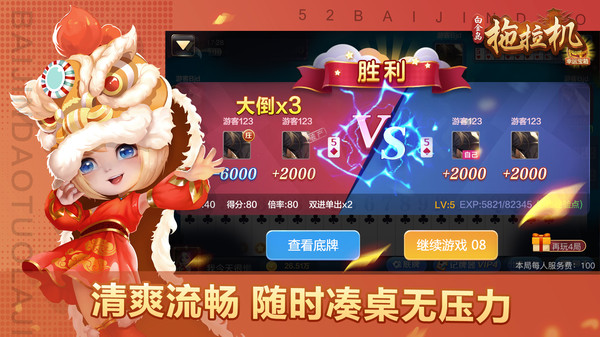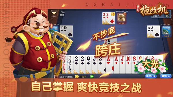 2. 游戏顺序为:发牌→抢庄或叫主反主→扣底→炒底→扣底→确定花色→五主过河→出牌→抠底→结算。