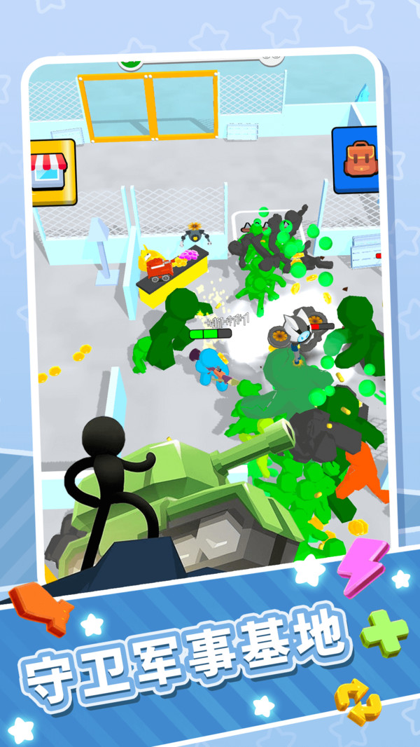 《火柴人勇士快闪》是一款以末日生存为背景的动作游戏,游戏中融入了模拟经营等诸多元素。玩家在游戏中身兼多职,击杀敌人积累原始基本,扩建基地雇佣平民,强化基地防御。拯救基地外的幸存者,为基地提供充沛的劳动力,挖掘矿产,增强兵力,探索新的区域,最终拯救世界,建立新的国度。