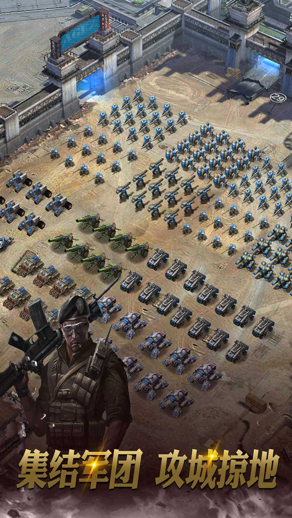 《霸略征战》是一款末日题材的即时战略SLG手游,在文明丧失的时代,玩家作为一座废墟城市的指挥官,需要通过指挥军官招募士兵,统筹城市运作,将沦陷的废墟城市重建成为繁荣强大的城市。游戏内,除了常规的个人战斗,多人集结等PVP战斗方式,还采用了压秒战斗机制,打破传统SLG游戏集结模式,让盟友之间可以更自由的推演战术,压秒战斗机制令数百人之间在线战斗得以实现;游戏中提供了三个类型共12种不同特长的兵种供玩家布阵搭配,不同类型的士兵拥有独有的技能,在阵型的配比上形成策略。更有丰富多样的英雄供玩家招募及委任,主管战斗、战略、内政三个类型的英雄可搭配出上千种军队配置。