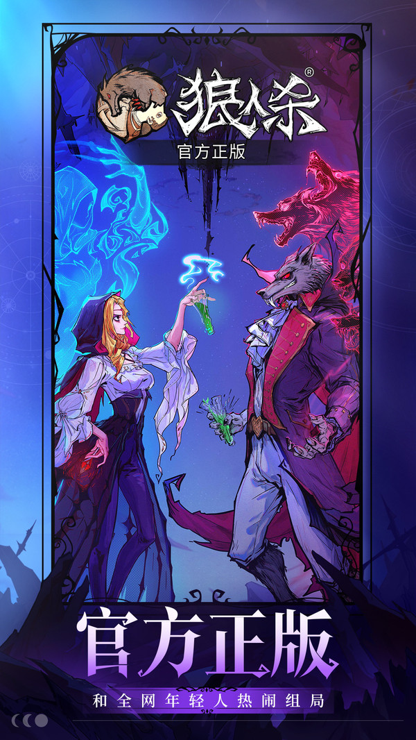 拥有狼人杀R相关商标,还原面杀玩法,带来沉浸式心跳体验!全网首发炼金魔女、狼鸦之爪、纯白之女、血月使徒、咒狐等角色,挖掘你的巅峰演技!人气主播、偶像明星每晚组局, 随时遇见你的心动~