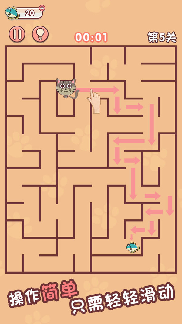欢乐迷宫猫,手动走迷宫,还能和朋友比赛谁更快走出哦!