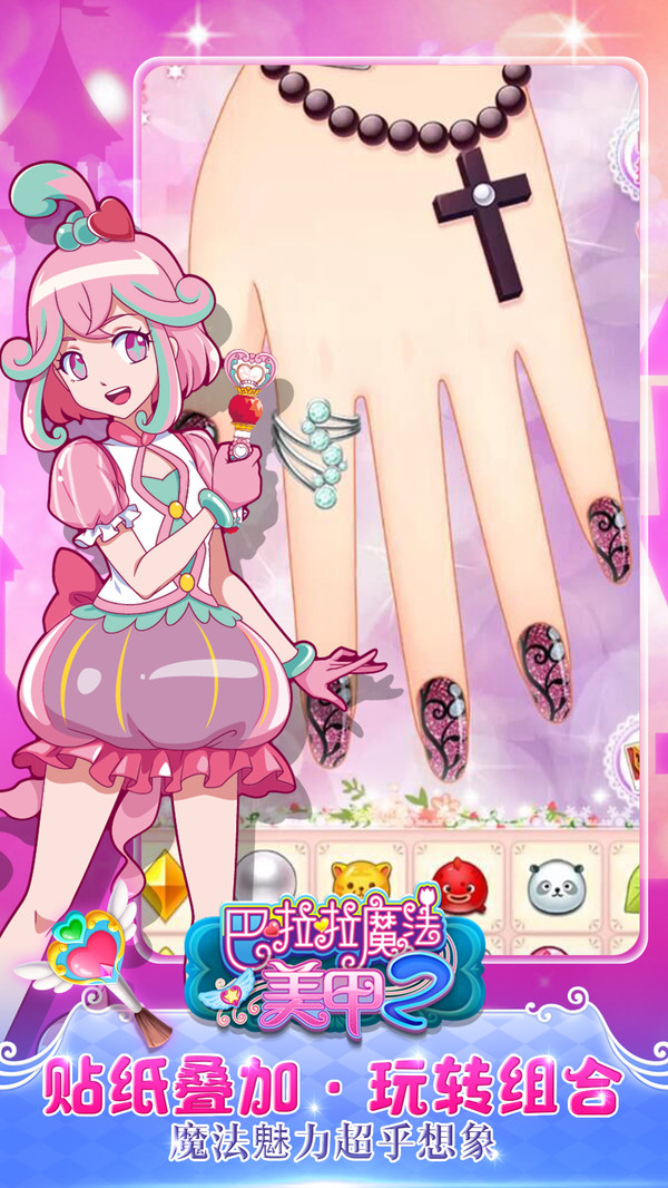 丰富素材与美甲流程与生活中保持一致,千种配饰、有趣的可叠加贴纸宝石,满足小女生对美甲的渴望~