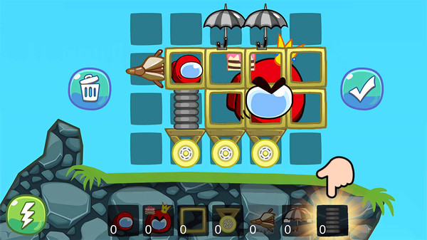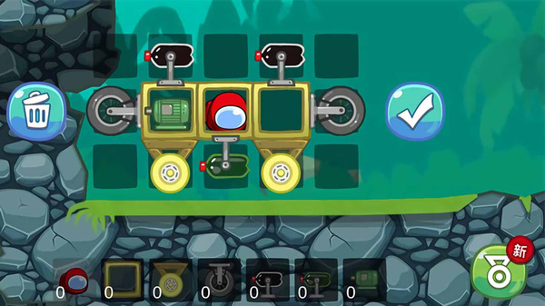 在游戏中,你需要观察关卡地形,组装飞车工具,通过飞行/滚动/爬行/旋转/撞击方式,顺利送到终点,即可通关;要想解锁三颗星成就,则还需要做到较短时间抵达终点、以及打碎星星方块。