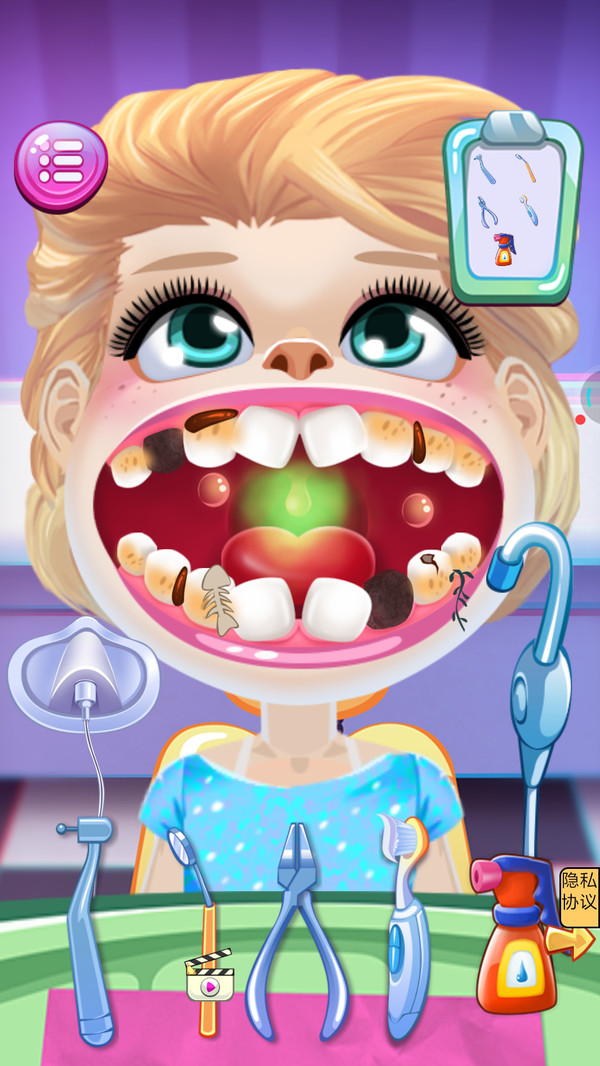 这是一款模拟牙齿护理的益智小游戏, 这是一款儿童经营牙诊所的过家家游戏, 我们可以通过模拟牙科医生为不同的小朋友治疗不同的牙齿问题。 让小朋友扮演牙科医生。能让小朋友更加了解牙齿健康问题,可以帮助小朋友养成良好的口腔护理习惯。