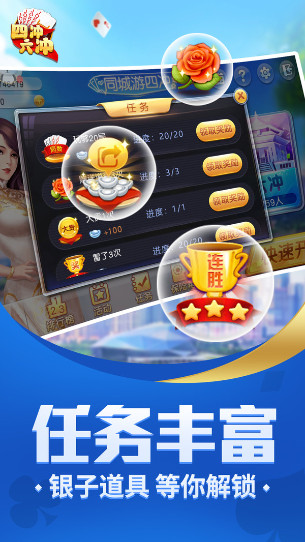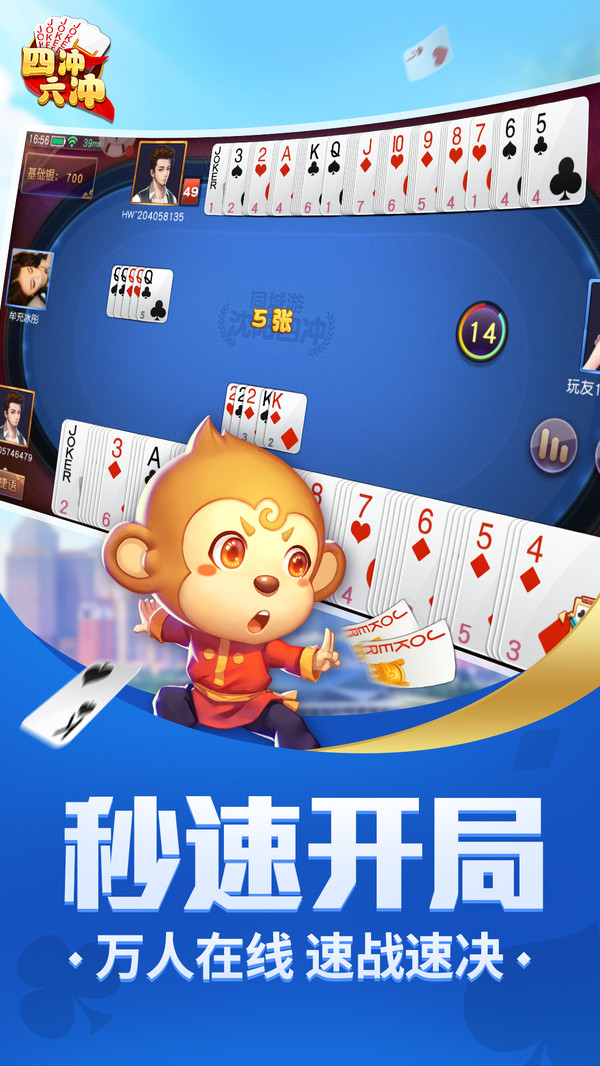 四、六冲采用具有特色的沈阳棋牌玩法,4、6名真实玩家,尽享2V2、3V3对抗快感。