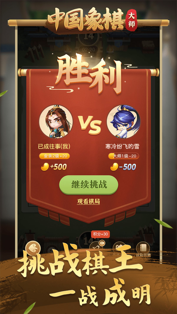 中国象棋大师是一款包含实时真人对战、在线对局观战、残局名谱挑战等丰富功能玩法的象棋游戏。在这里你可以与线上玩家真人pk,观看实时对战直播,也可以与电脑ai切磋技术,挑战古今残局名谱,更可以结交各地象棋爱好者,交流棋艺。中国象棋大师,助你在成为象棋大师的道路上不断前进。