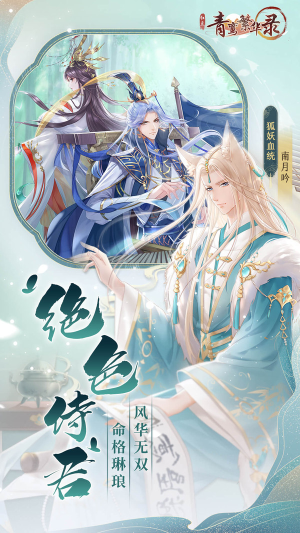 古风恋爱养成手游《青鸾繁华录》,古风养成和恋爱互动的浪漫结合,长篇主线剧情,精美立绘和场景,更有多位CV倾情献声,为你编织一场有声有色的梦幻王国。别扭单纯的相府公子,温柔深情的竹马至交,算无遗策的高冷军师,强势霸道的敌国皇子,身世神秘的高冷妖魔…………作为一国女帝,你将邂逅不同的男主,与他们并肩作战,共同成长,一场充满悸动的绮丽冒险,邀您共赴!