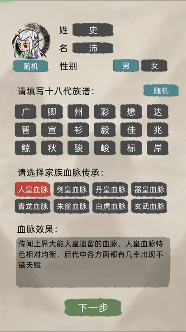 玩家创建家族时,可以选择一个特有的血脉作为传承,其中玩家自身必然携带这个血脉能力,家族后人中将有机会出现此血脉。血脉的设定类似于凡人中灵界的真灵家族,拥有上古神兽的血脉,还有各种修仙小说里特色的各种各样血脉。