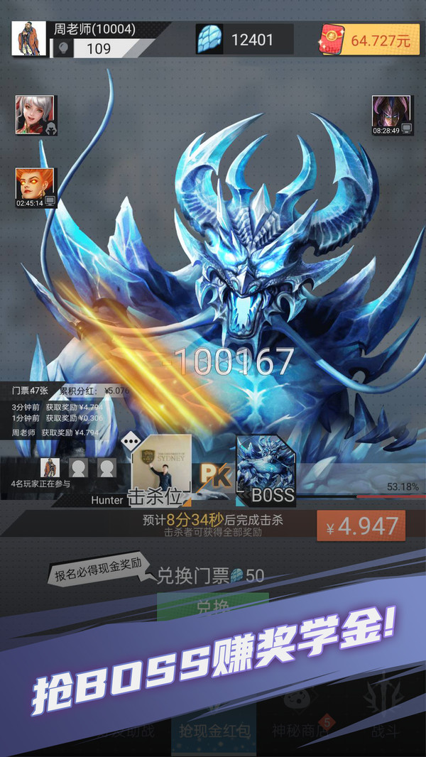 BOSS挑战:通过使用勇者凭证“龙鳞碎片”可报名参加BOSS挑战,成为最后的击杀者将可获得奖学金